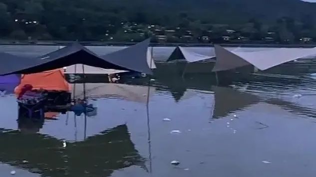 水位上涨 帐篷、天幕泡在水里(图源:应急管理部)